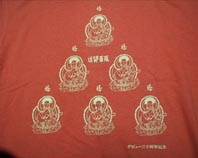 エンケンTシャツフロント部 遠賢菩薩って書いてあります。菩薩の上には梵字のようなのが書いてあります。 右下は"デビュー三十周年記念"と書いてあります。 サイズが大きすぎて実際に街中ではきれないのが残念です......。 |