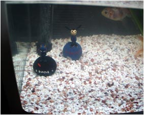 水槽のサイズから2匹飼う位がちょうどいいとの 金魚屋さんのアドバイス。 レイアウトはとりあえずシンプルに。 |
