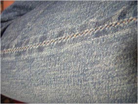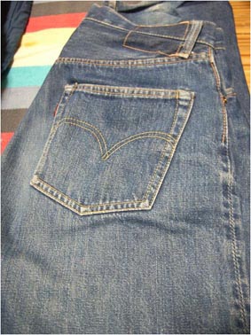 最近また家でごろごろしているときなどに何気に履くようになりまして、コーナーを始めた頃と比べると明らかに色落ちが進行していることに改めて気づきまして、デジカメの操作練習もかねて(笑)撮ってみました。