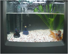 水槽のサイズから2匹飼う位がちょうどいいとの 金魚屋さんのアドバイス。 レイアウトはとりあえずシンプルに。 |